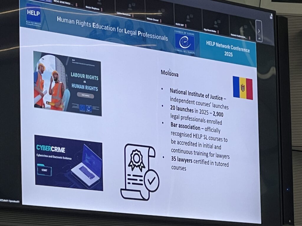 În perioada 3 – 4 iulie 2025, avocatul Vladimir Palamarciuc, membru în Consiliul Centrului de Instruire din cadrul Uniunii Avocaților și membrul Consiliului Uniunii Avocaților, a participat la conferința anuală a rețelei Programului HELP (Human Rights Education for Legal Professionals) a Consiliului Europei, unde a fost ales în calitate de membru al Consiliul Consultativ al rețelei Programului HELP. În cadrul Conferinței HELP a fost evidențiată, în calitate de bună practică, omologarea cursurilor HELP în scopul instruirii inițiale și continue a avocaților stagiari și a avocaților, aprobată în luna februarie 2025 de către Consiliului Uniunii Avocaților din Republica Moldova și Centrul de Instruire a Avocaților.